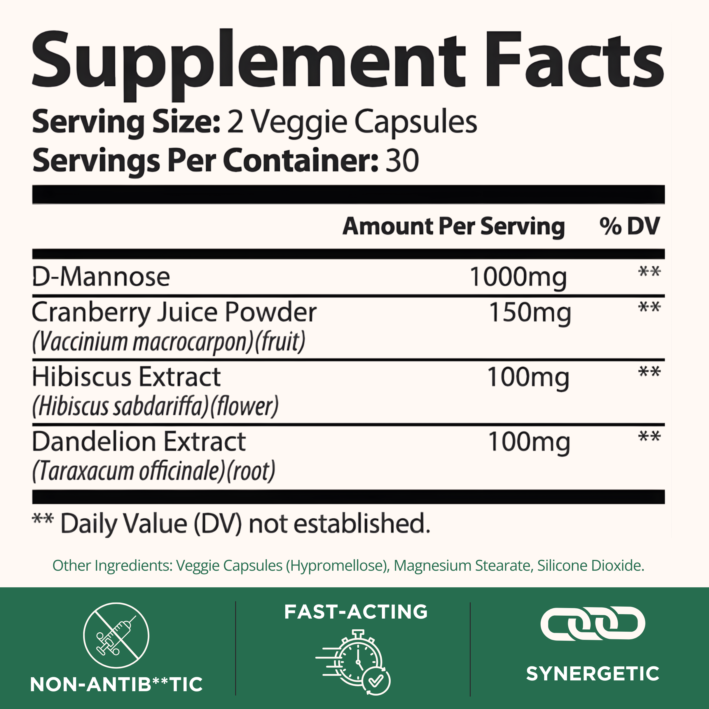 D-Mannose & Cranberry bind to impurities and bacteria.
